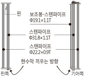• 특징 : 보조파이프가 있어 상하판 일체형 가능