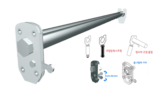 • 구성 : (좌측)코일압축스프링, 현수막고정클립 (우측)톱니형태 기어